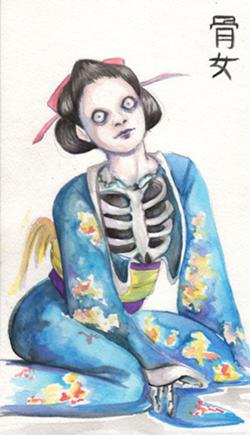 Hantu ini digambarkan sebagai sosok wanita yang sangat cantik, dengan leher jenjang dan kulit yang halus. Seluruh bagian tubuhnya, kecuali leher ke atas dan kedua pergelangan tangannya tertutup oleh kimono. Ia harus menyembunyikan bagian tubuh lainnya, karena sesungguhnya seluruh tubuhnya sudah hancur dan hanya tinggal tulang-belulang.
